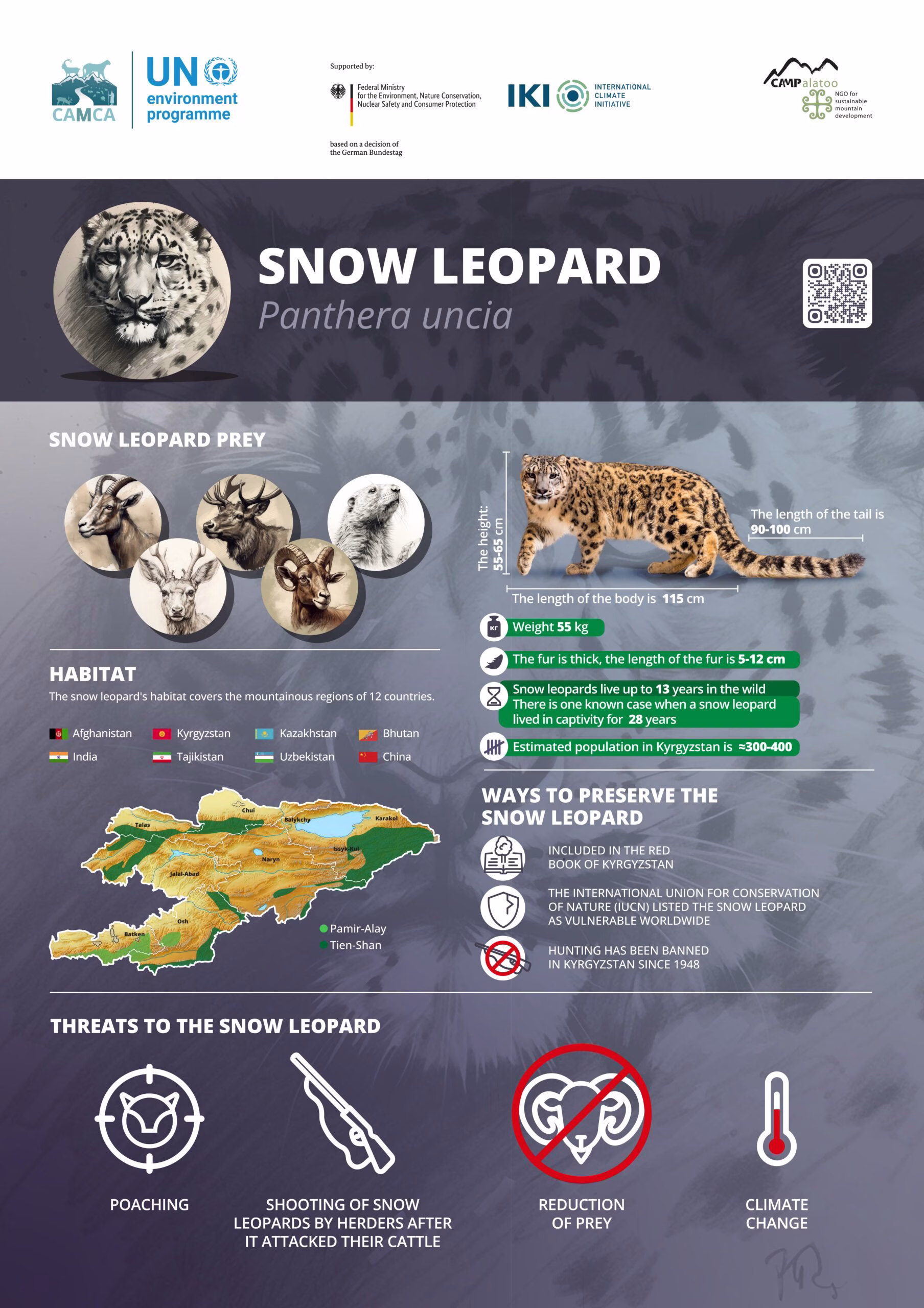 CAMCA Species Information Poster – Snow Leopard. Developed by CAMP Alatoo (English).