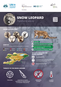 CAMCA Species Information Poster — Snow Leopard. Developed by CAMP Alatoo (English).